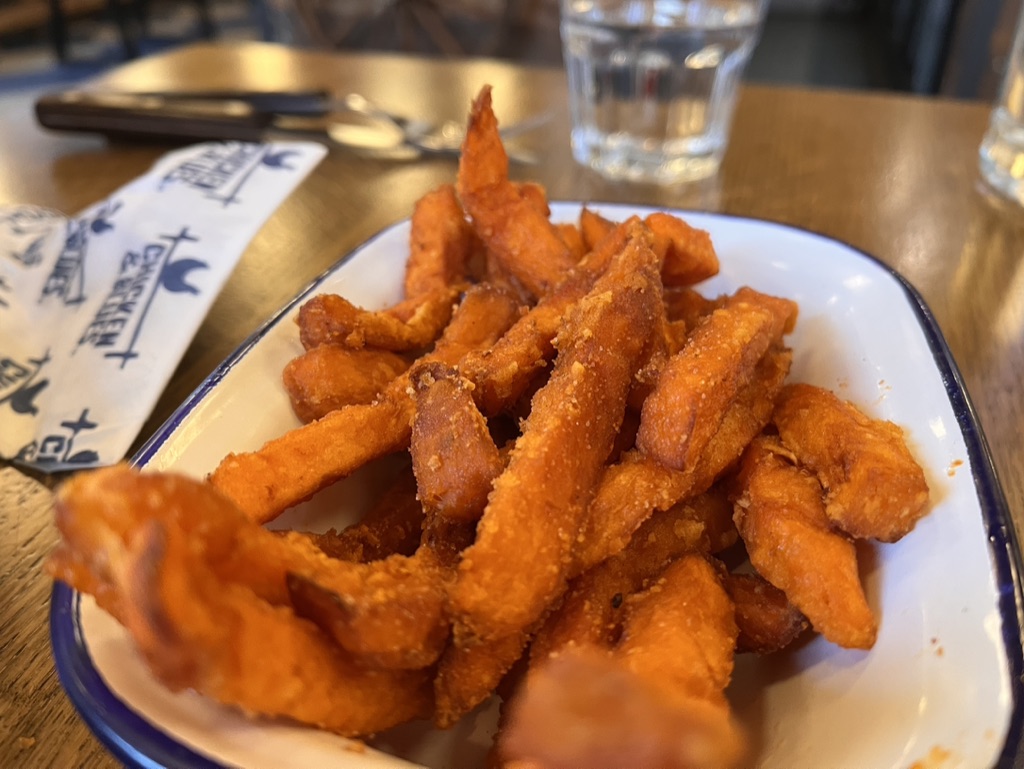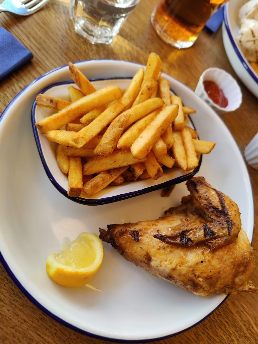 “Me and my boyfriend went for a date night and as it was his last night visiting me, we decided to try something new, and I’m glad we chose Chicken & Blues. I can’t rave about this place enough! We ordered quarter chicken and half chicken, with sweet potato fries, garlic bread(?) gravy, and honey BBQ sauce. Then we had the brownie cake which was also tasty but wished we had ice cream options. Everything was just amazingly delicious, I don’t usually order chicken from restaurants but this one was absolutely tasty, and everything blended so well! The chefs did amazing with the food. We were looked after by Bruno who was so attentive, not just to us but other customers as well. He went beyond for us, I had a few to drink (as a girl does lol!) and Bruno made sure I had something to eat on my way home so I didn’t get sick, and he kindly gave me a cookie on the house, the sweetest guy! We had a great conversation with him, it’s always nice to get to know the people who are providing service, as I’ve been there before. He was lovely meeting Bruno and the food was amazing! However, I would recommend for the brownie dessert to have some ice cream options, it would elevate the deliciousness the brownie already gives! I would highly recommend this restaurant, very lovely staff. Service and food 10/10, no notes.”
