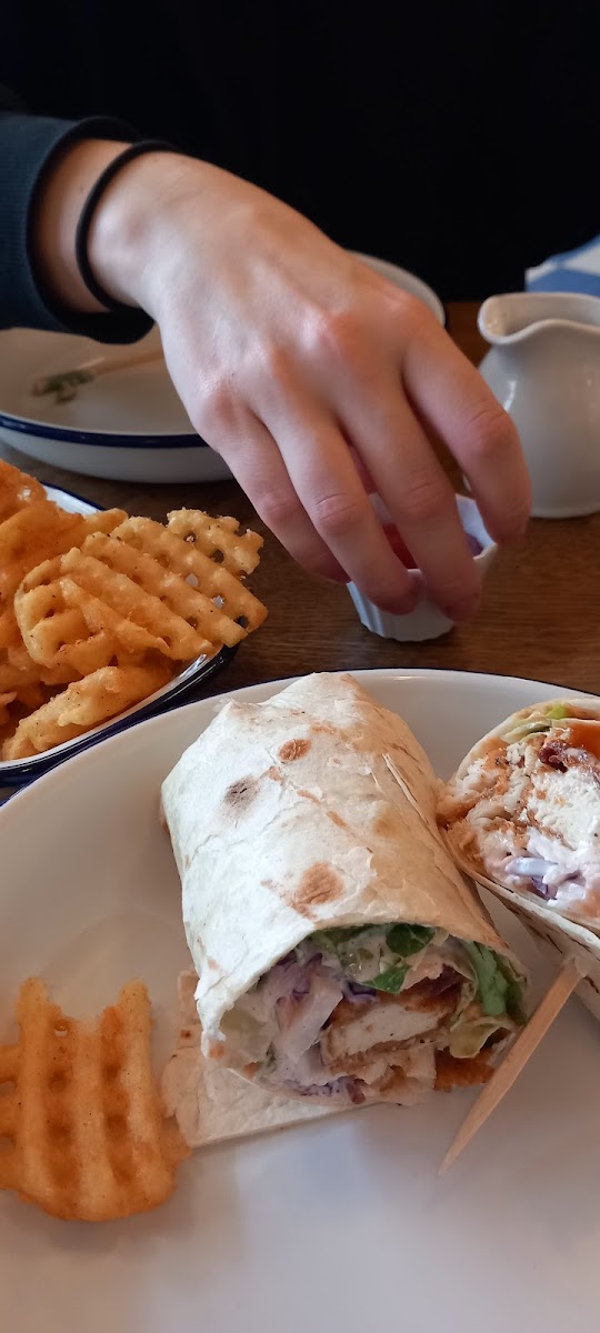 “— A bit of a late review as I thought I already did it, but it wasn’t on Google — My Mum and I visited on the 28th of May, 2025 after I finished work. The food was absolutely delicious, served promptly and was piping hot. Mum’s wrap was enormous! The food is all reasonably priced, too. We were served by both Braida and Bruno, both of whom were very pleasant. As we were the only customers at the time (it was around 3:30pm ish, so a late lunch), Bruno was chatting to us for a while and cracking jokes. Both of the aforementioned servers are assets to your store. We can’t wait to go back, thank you C&B Christchurch!”
